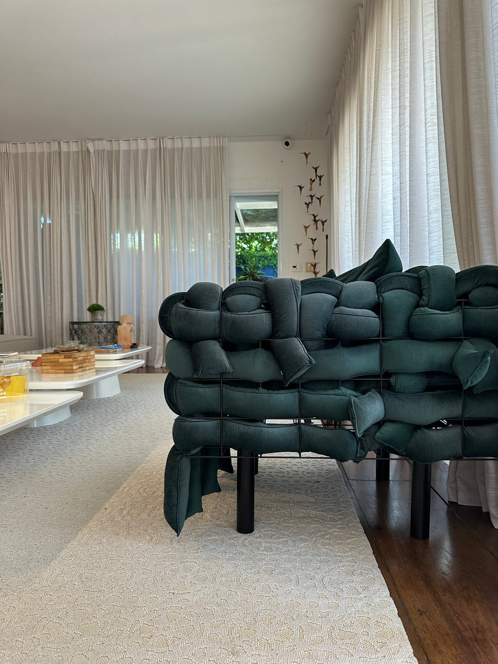 Pufes com rodízios em silicone e com trava | Espuma soft densidade 28 nova; encostos e almofadas com plumante novo; tecido linho mescla cinza clar...