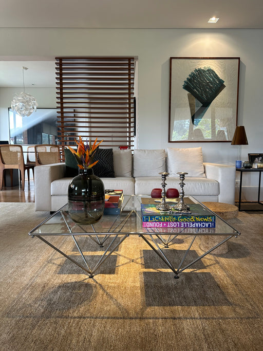 Material: Couro e Chenille BoucléMedidas: C 2,65 x P 1,03 x A 0,70Avaliação: O móvel está em bom estado, mas pode apresentar leves marcas de uso, q...