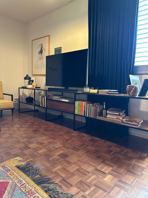 Com design elegante e atemporal, o aparador combina tampo em madeira Ipê e pés em Jequitibá, unindo sofisticação e funcionalidade em uma peça versá...