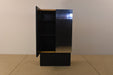 Estrutura em carvalho americano ebanizado, portas revestidas em couro Crocco com detalhes em inox e base também ebanizada. Uma peça sofisticada, com acabamento premium e design imponente.