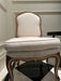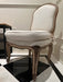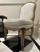 Avaliação: A cadeira apresenta marca de avaria aparente, como manchas no tecido na parte traseira.