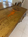 Avaliação: O aparador apresenta marcas de uso e avarias aparentes, incluindo manchas no tampo, conforme mostra foto.