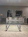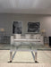 Avaliação: A mesa apresenta marca de avaria aparente (lascas no vidro), que não compromete sua estrutura e não precisa ser restaurada, pois não afeta a integridade da peça.