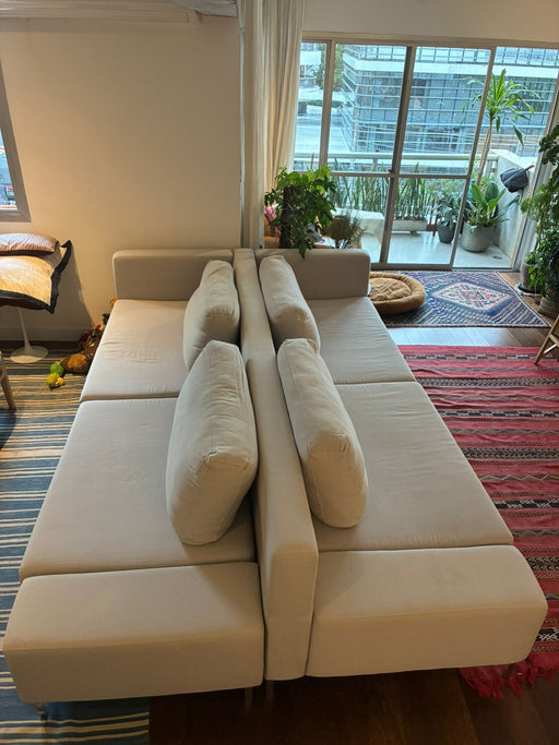 Dois módulos de 1,85 cada.Medidas: C 3,70 × P 0,90 × A 0,62Avaliação: O sofá está em bom estado, mas pode apresentar leves marcas de uso, q...