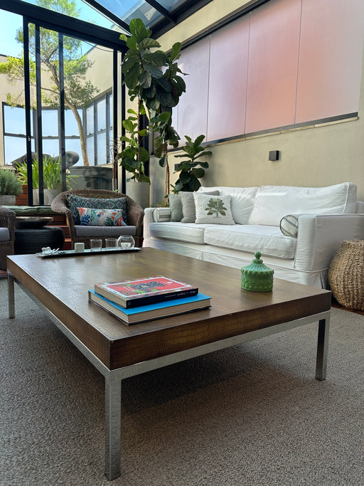 Valor pago: R$ 39.000,00.Material: Base em alumínio fundido, dominós em latão maciço patinado e tampo de vidro pintado à mão.Medidas: C 1,04 × P 1,...