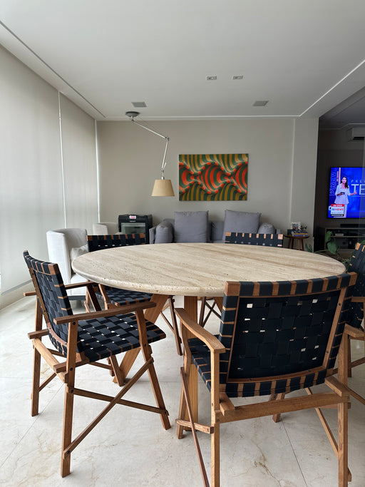 Medidas: C 1,80 x P 0,83 x A 0,76. Avaliação: A mesa de jantar está em bom estado, mas pode apresentar leves marcas de uso, que podem ser pequenos ...