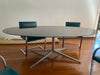 Pés em alumínio e tampo (não original) em granito Nero Absoluto importado, a Mesa de Jantar Oval "FK2", de Florence Knoll para a Forma, combina design clássico com materiais contemporâneos, trazendo elegância e durabilidade ao ambiente.