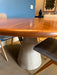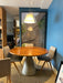 Avaliação: A mesa apresenta marcas de uso e avaria aparente, como risco no tampo e na madeira. Recomendamos o restauro do tampo.