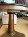 Avaliação: A mesa apresenta marca de avaria aparente. O tampo está trincado em uma das laterais, mas isso não compromete sua estrutura e não precisa ser restaurado, pois não afeta a integridade da peça.