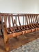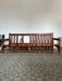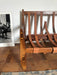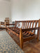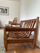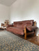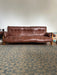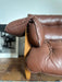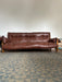 Avaliação: O sofá apresenta avarias aparentes: tanto o couro quanto as percintas estão danificados e necessitam de restauro.