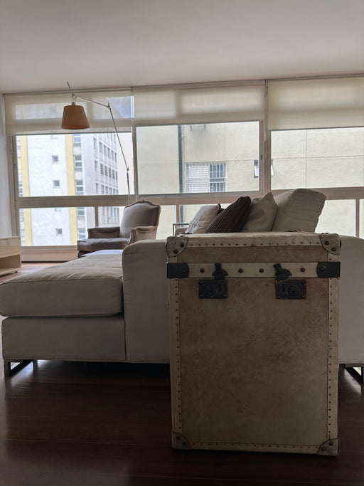 Medidas: C 0,44 × P 0,40 × A 0,60 Avaliação: O baú apresenta marca de avaria aparente, como manchas no couro, que não compromete sua ...