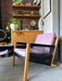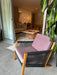 Avaliação: A poltrona apresenta marcas de uso e avarias aparentes, como manchas na almofada, que não compromete sua estrutura e não precisa ser restaurada, pois não afeta a integridade da peça.