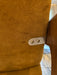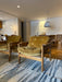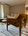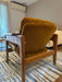 Avaliação: A poltrona apresenta avarias, incluindo a falta de um botão e riscos de caneta na parte inferior da almofada do assento conforme mostra foto.