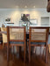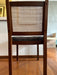 Avaliação: A mesa está em bom estado, mas pode apresentar leves marcas de uso, que podem ser pequenos arranhões ou desgastes sutis, que não comprometem sua estrutura. As cadeiras apresentam pequenas avarias na palha do assento, visíveis nas fotos.