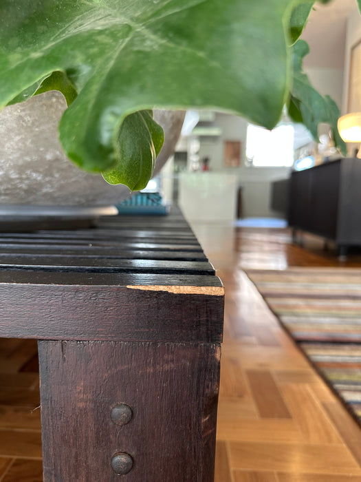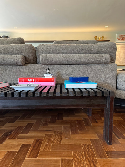 Avaliação: O banco apresenta sinais de marcas de uso visíveis, como marcas de batidas na madeira que não compromete sua estrutura e não afeta a integridade da peça.