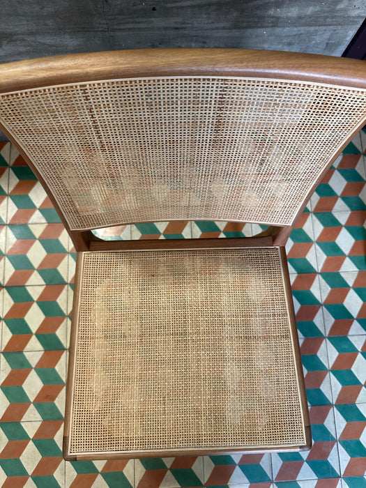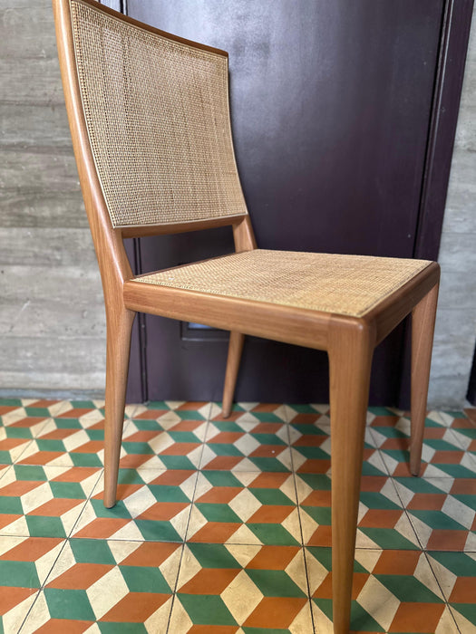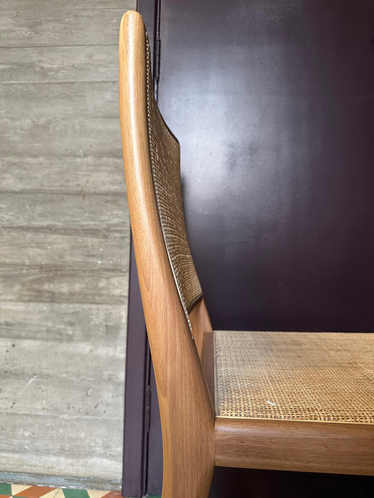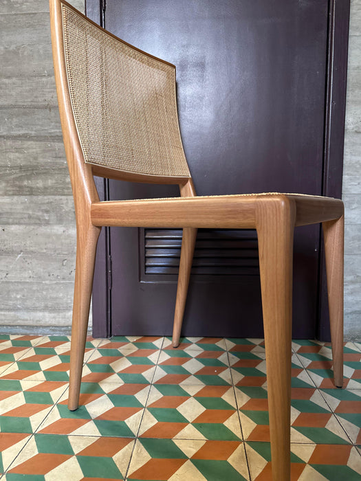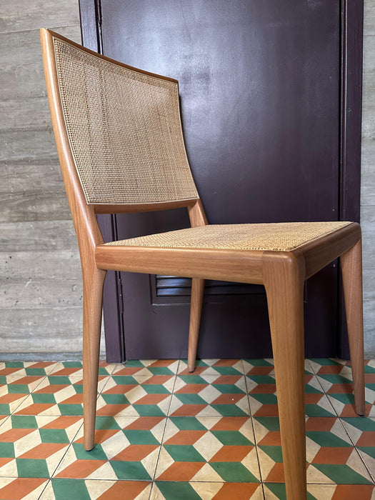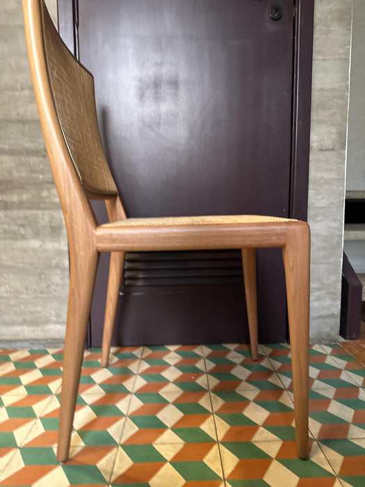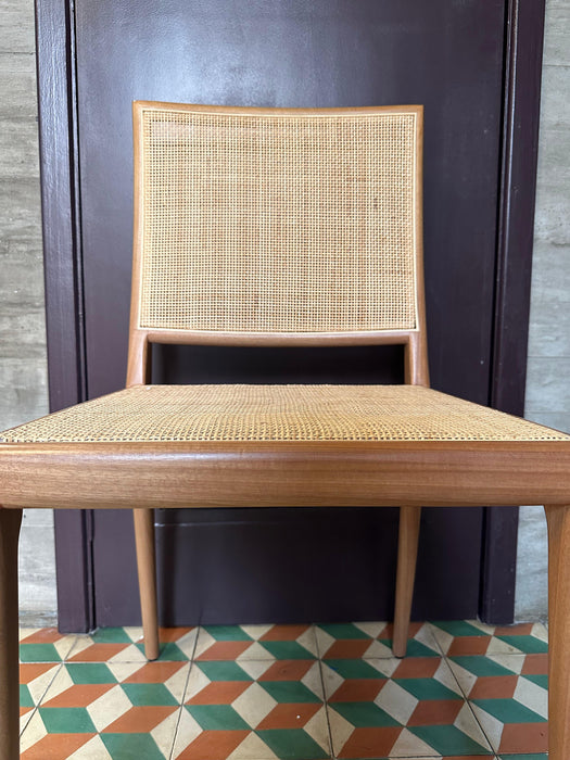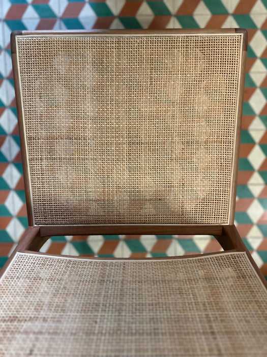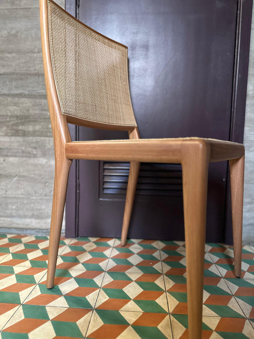 Design assinado por Geraldo de Barros, com estrutura em madeira e assento e encosto em palha natural. Peças leves, elegantes e atemporais, ideais para compor ambientes sofisticados com autenticidade e estilo.