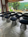 Avaliação: As cadeiras apresentam marcas de avarias aparentes (marcas no tecido e de oxidação) que não comprometem sua estrutura e não precisam ser restauradas, pois não afetam a integridade das peças.