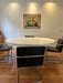 Avaliação: A mesa apresenta marca de avaria aparente que não compromete sua estrutura e não precisa ser restaurada, pois não afeta a integridade da peça.