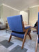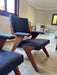 Com estrutura robusta e estofamento em tecido 100% algodão azul, que une conforto e design clássico brasileiro. Perfeitas para salas de estar ou ambientes sofisticados.