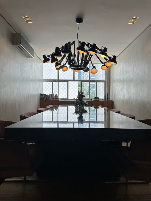 bom estado, apresentando leves marcas de uso (uma lâmpada queimada que precisa ser substituída), mas isso não compromete sua estrutura nem a integridade da peça, não sendo necessária restauração.
