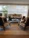 A poltrona está em bom estado, mas pode apresentar leves marcas de uso, que podem ser pequenos arranhões ou desgastes sutis, que não comprometem sua estrutura.