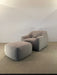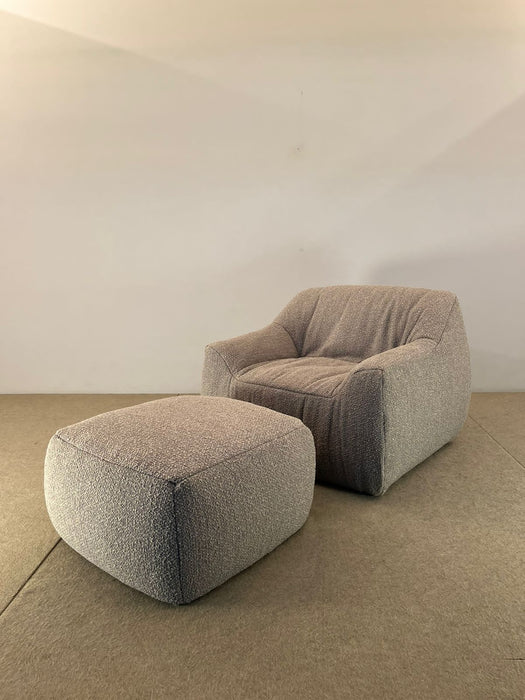 Acabamento em tecido bouclé cinza, que combina conforto e sofisticação.